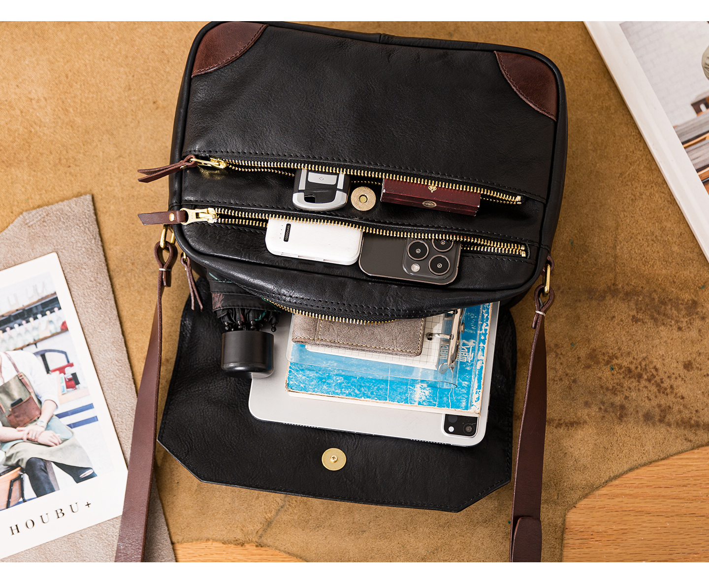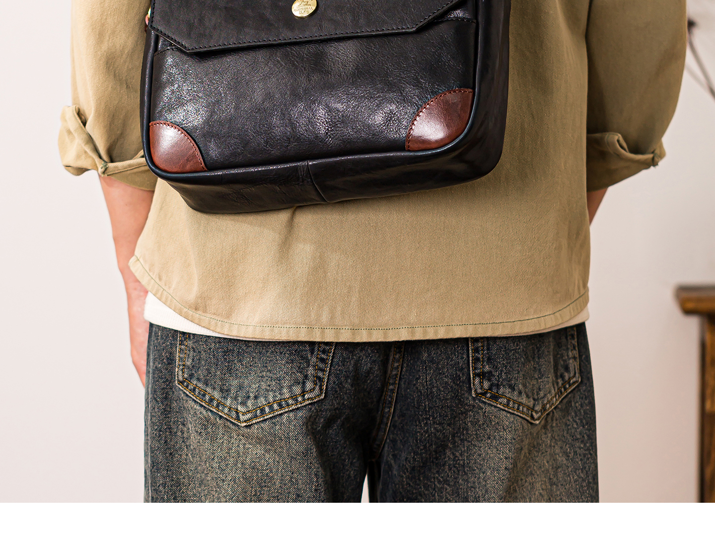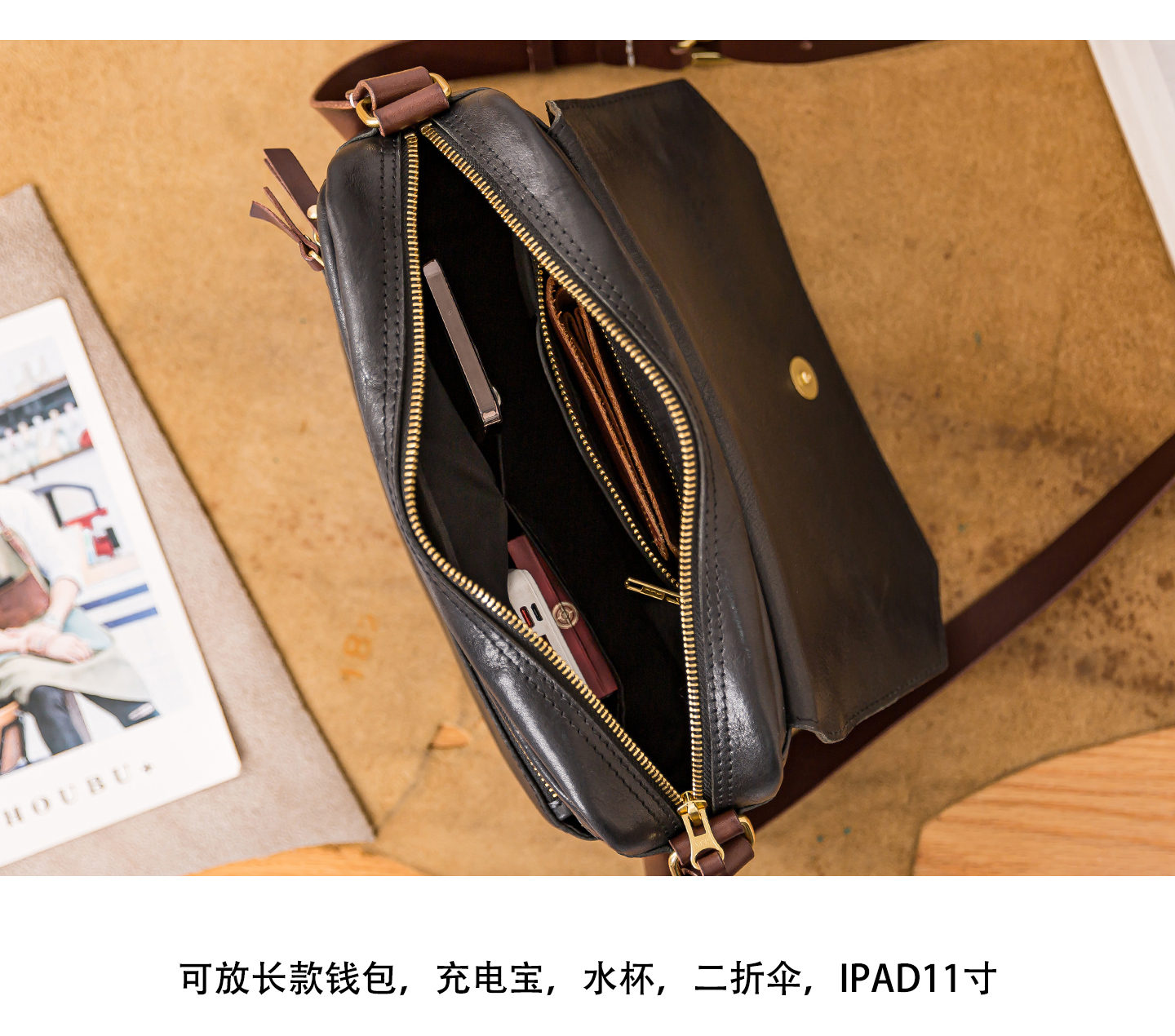 Genuine leather men's single-shoulder bag