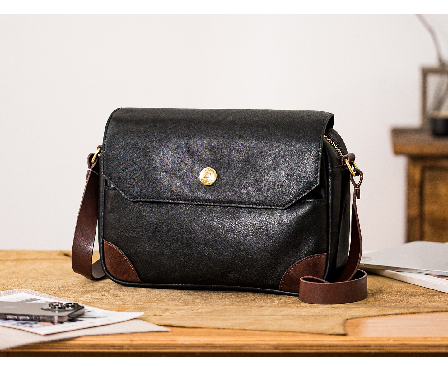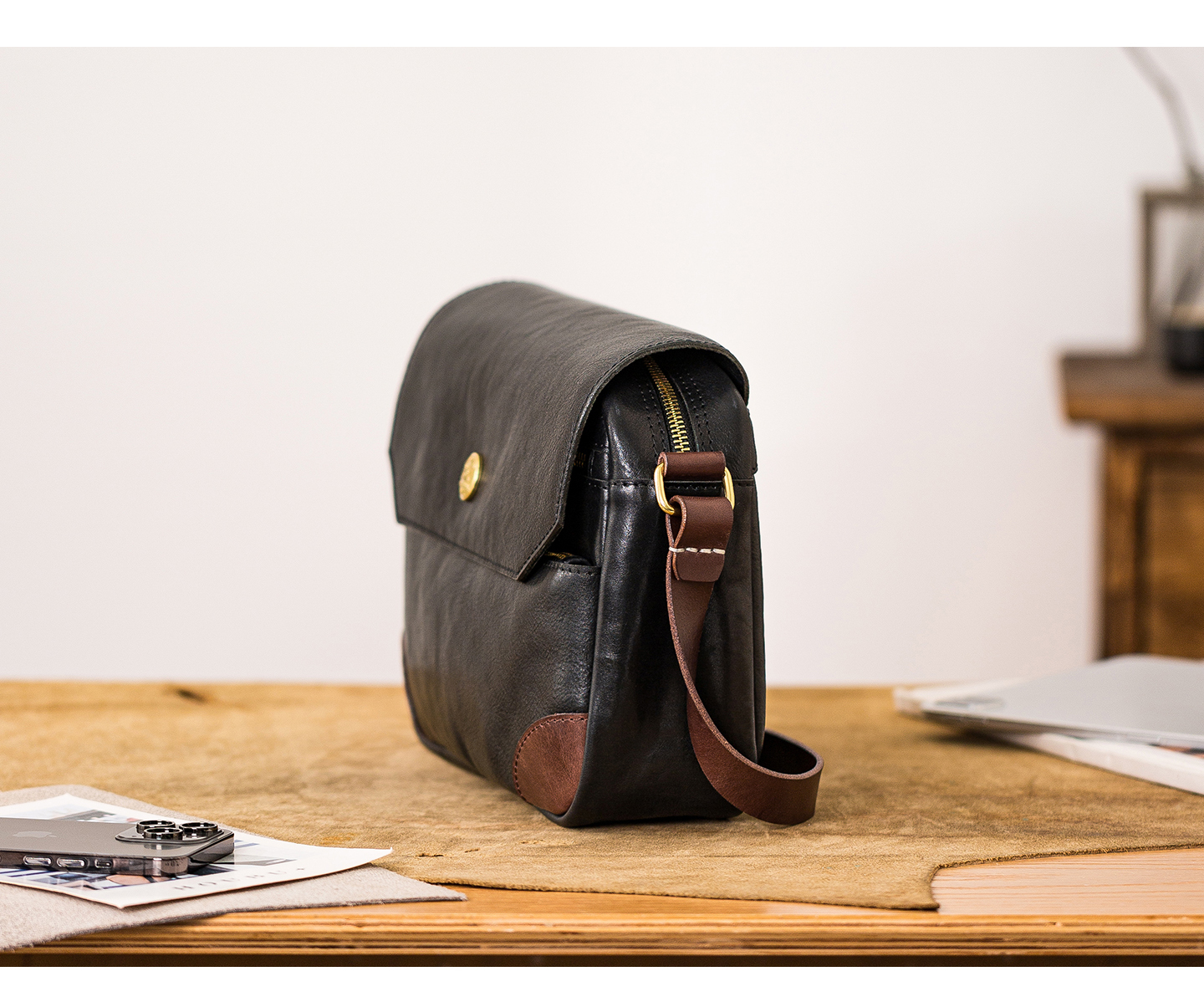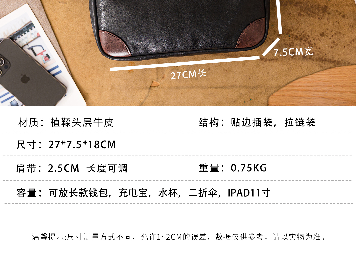 Genuine leather men's single-shoulder bag